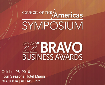 Please join us on Friday, October 28, for the 2016 Council of the Americas Symposium and BRAVO Business Awards.
